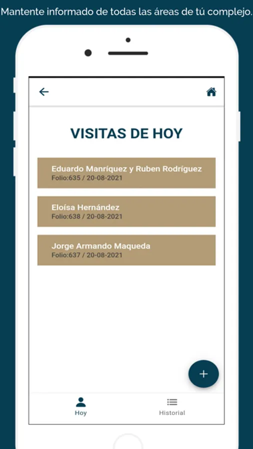 Utiliza tu usuario y contraseña de demoarboledas.privadaarboledas.net para revistar tus visitas.