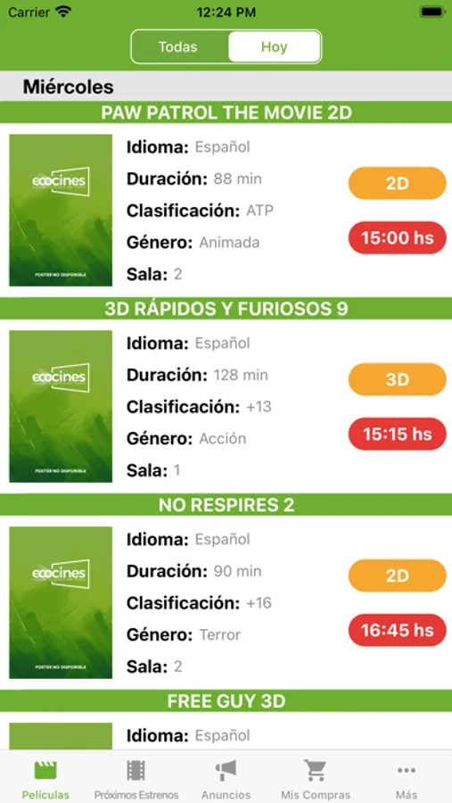 Desde nuestra Aplicación podrás tener acceso a toda la información de las películas, estrenos horarios y novedades del complejo. Ademas podrás acceder a la compra de entradas.