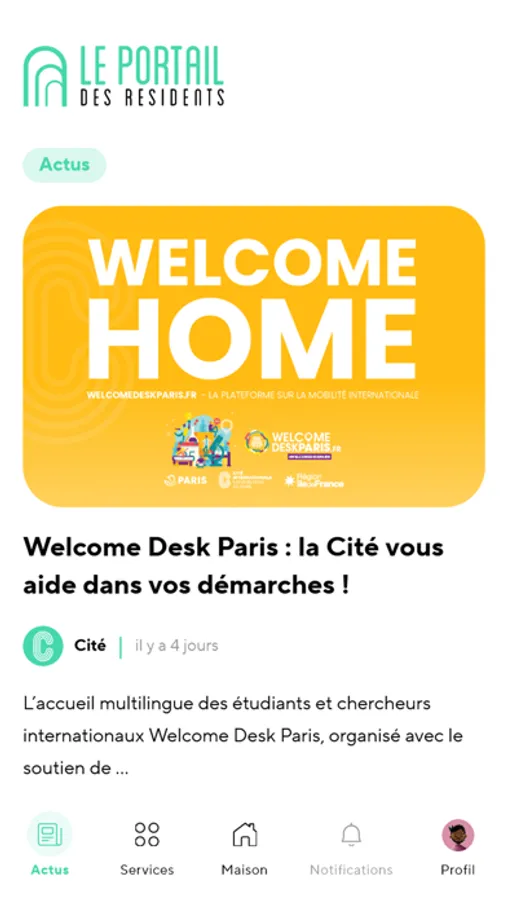 Résidents de la Cité internationale universitaire de Paris, connectez-vous à l'application avec vos identifiants reçus par email.
