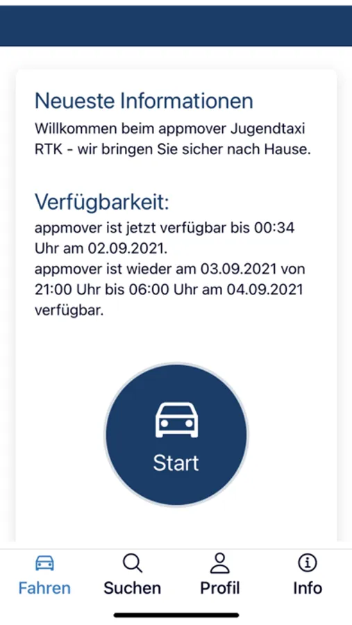 Jugendtaxi RTK App-System is powered by appmover / nightmover