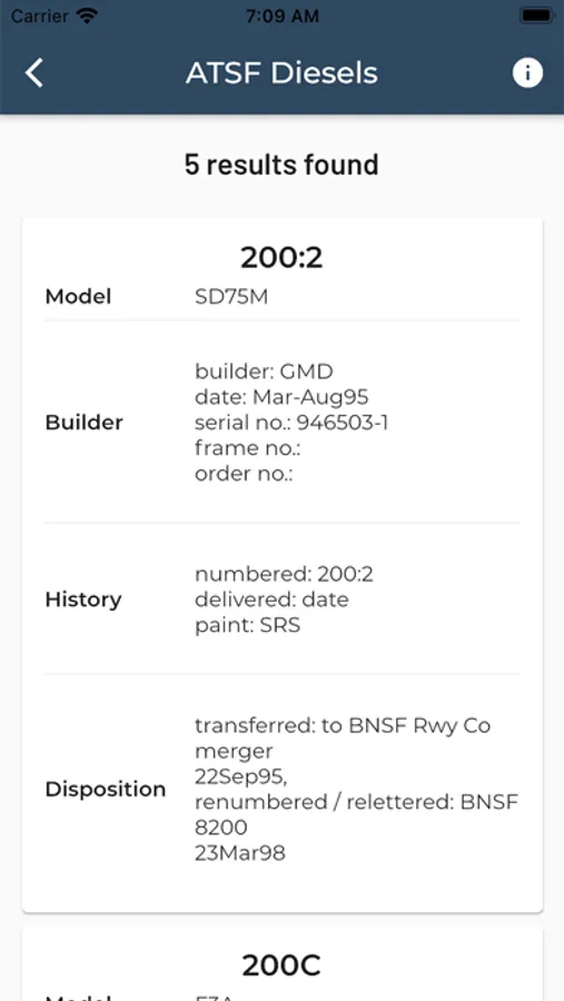 An app that allows searching for diesel electric locomotive information using locomotive number across the Atchison, Topeka and Santa Fe Railway Diesel Roster.