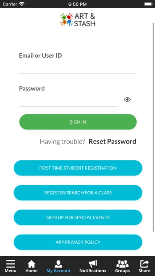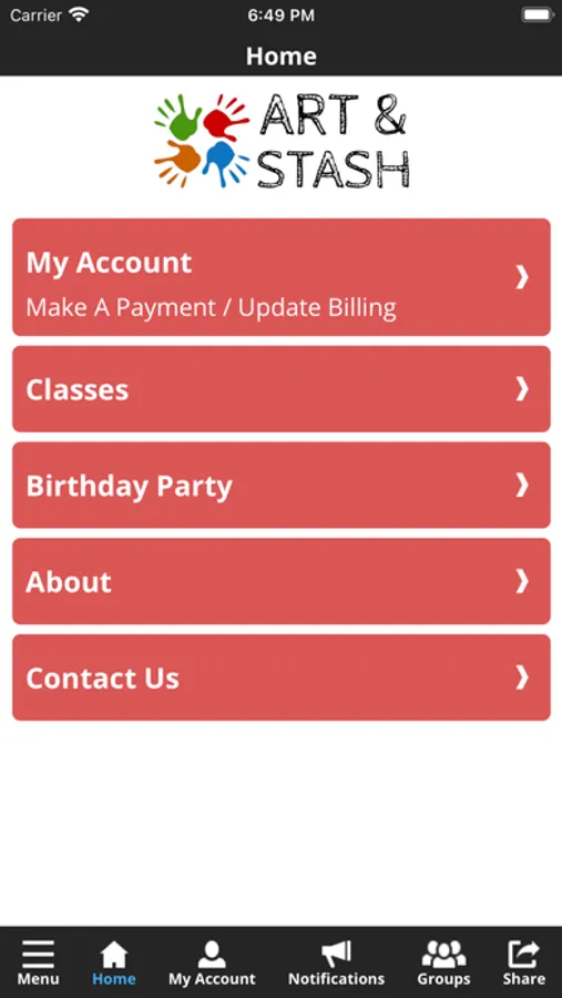 The Art and Stash app allows you to manage your account with ease, register for classes, parties, and special events. You'll also receive important notifications about class changes, closings, registration openings, special announcements, and upcoming events.
