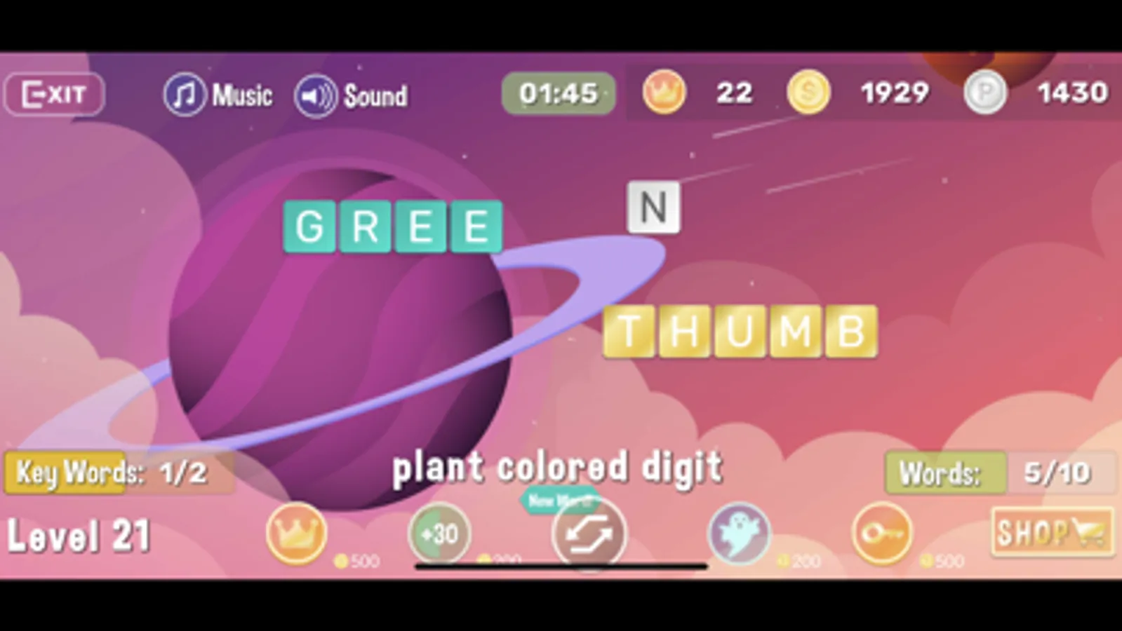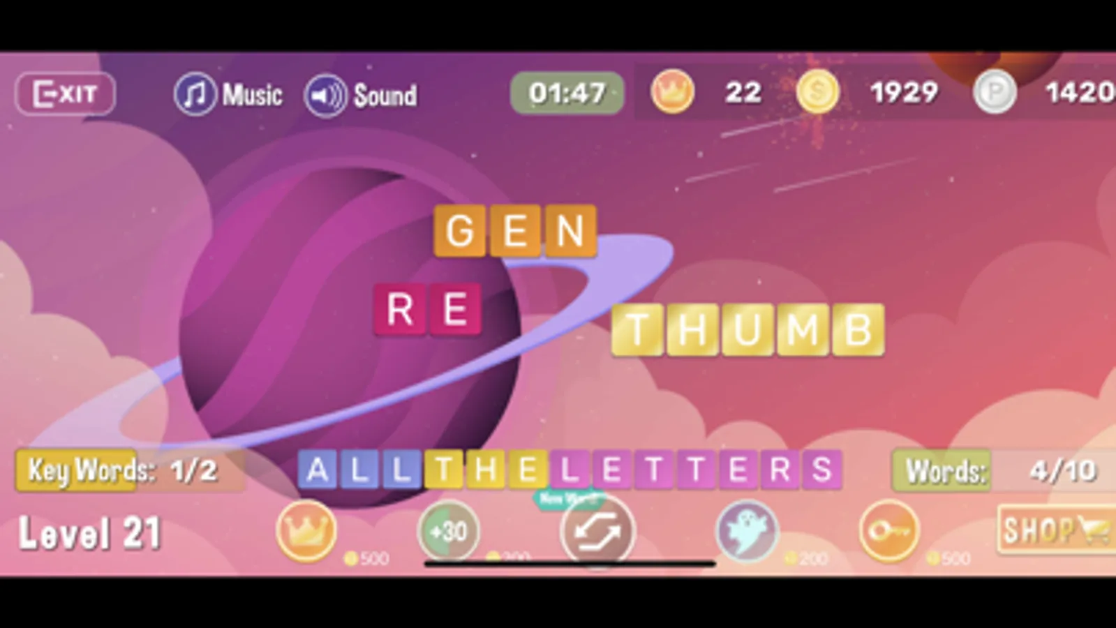 Combine letter tiles to form words. Relax and stretch your brain by seeing how many "All the Letter" sets you can make, or try to beat the clock to unlock the next level by solving all the key words to each clue!