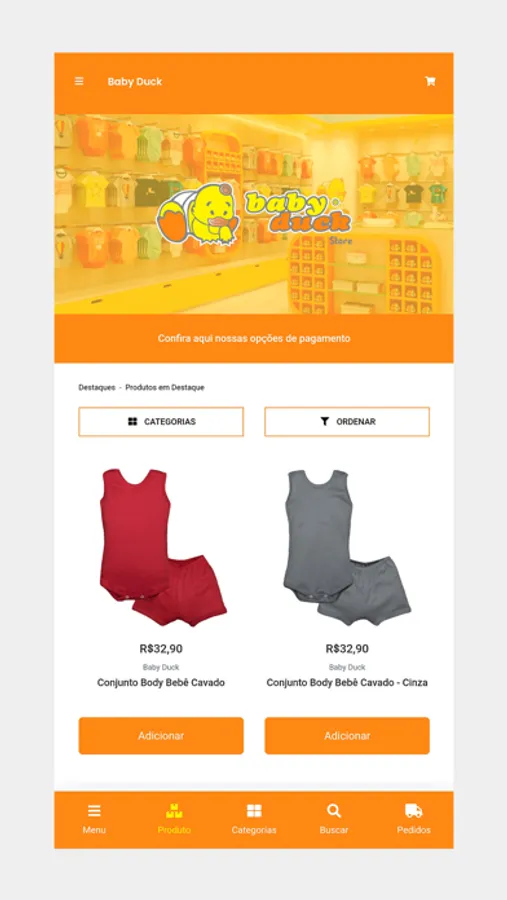 A Baby Duck é uma marca focada em produtos e acessórios de Bebê, sendo reconhecida por sua qualidade e conforto. A Linha de roupas, principalmente as peças mais utilizadas pelas mamães tais como; Body, Calça, macacão, pijamas, luvas, pantufinhas, toalha de boca e outros tantos mais, são de fabricação própria. Sendo assim a Baby Duck através de pesquisas contínuas desde 1994, prioriza sempre a qualidade máxima de seus produtos com um acabamento impecável. Em nossas roupinhas utilizamos o melhor fio de algodão para este seguimento (fio 30/1 penteado) garantindo seu toque macio e suave com a pele do bebe. A marca possui franquias em todo Brasil e para facilitar a sua compra, desenvolvemos este APP para facilitar e agilizar a sua compra, onde através da sua localização, irá buscar a loja mais perto de você. Com isso você tem uma melhor experiência e claro com um custo menor na entrega e com muito mais rapidez. Um dos diferenciais da Baby Duck é a sua modelagem que atende desde do Prematuro, oferecendo dois tamanhos nesta fase, até o tamanho 3. Mesmo com o foco na linha Baby, a Baby Duck também oferece produtos em grades maiores até o tamanho 8. Confira o estoque ofertado pelas lojas e tenha uma ótima experiência de Compra.