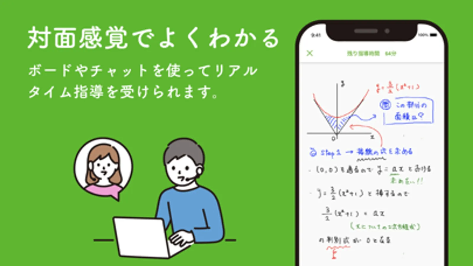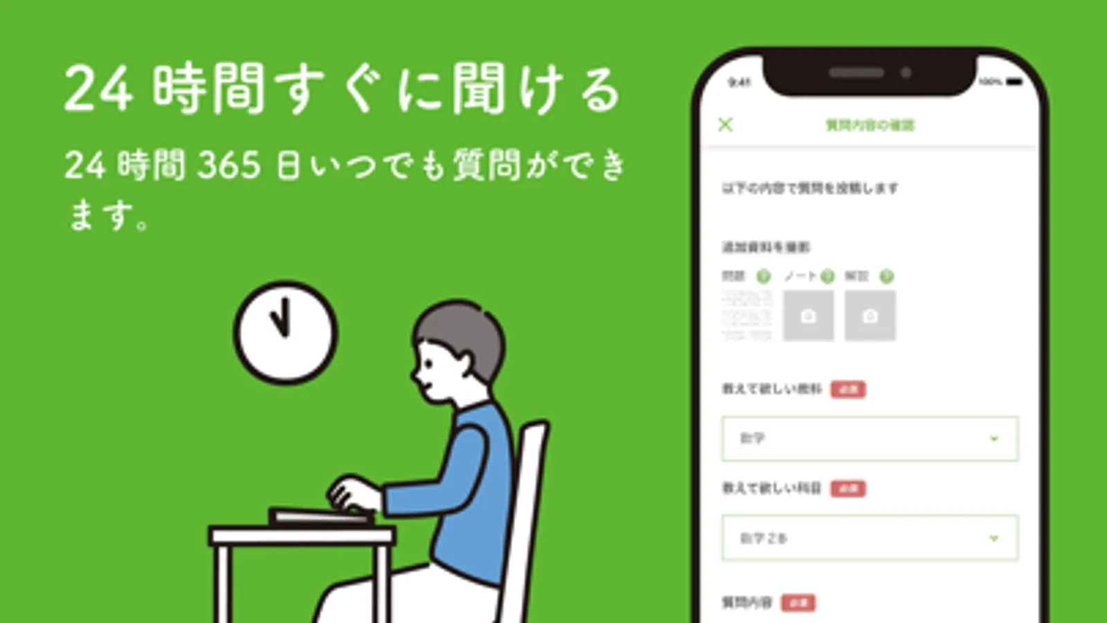 いつでもどこでも気軽に質問でき、リアルタイムで指導いたします。