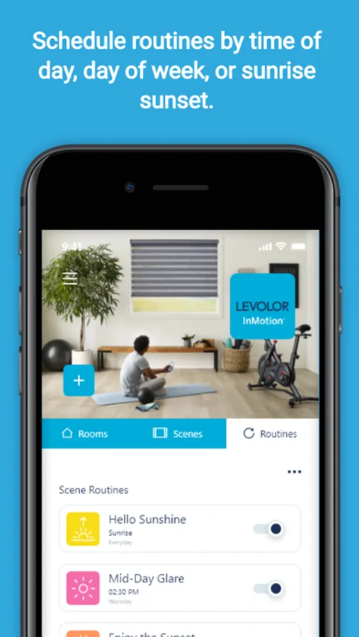 - Intuitive control: Organize shades by rooms, set scenes for your preferred shade positions, and create scheduled routines by time of day, day of week, or proximity to sunrise sunset, to seamlessly coordinate with your daily life.
