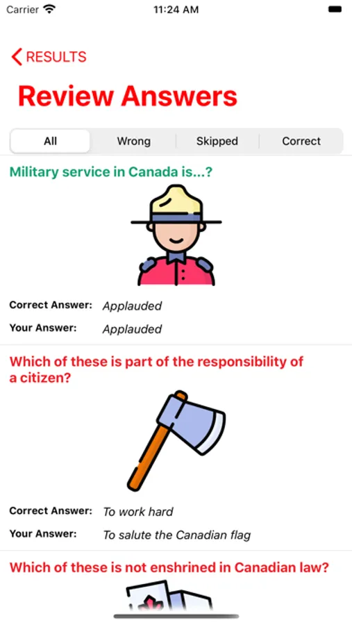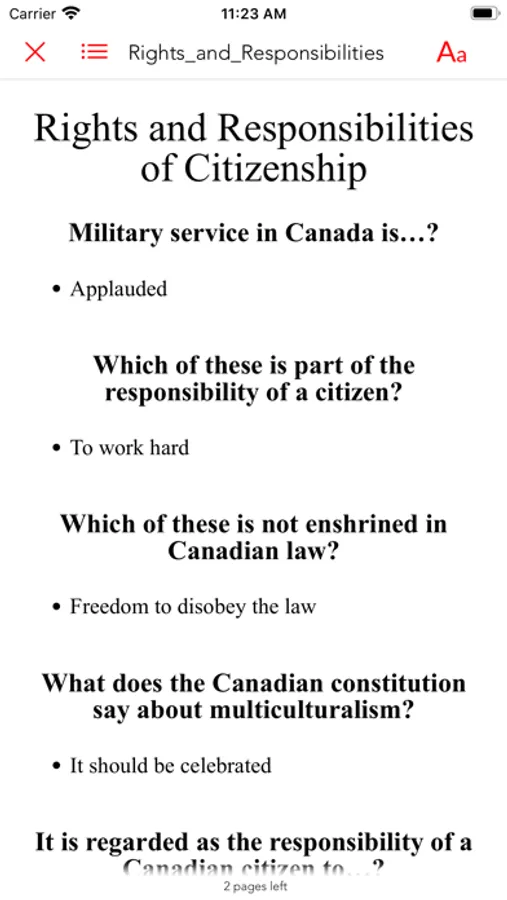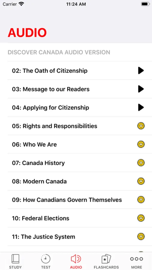 The Canada Citizen Test App is the complete guide for the Canadian citizenship test. The questions and answers are presented in text (documents), audio files of each chapter, flashcards of all questions and timed exam formats. Study materials are included in both pdf and ePub formats. Pass your exam the first time!