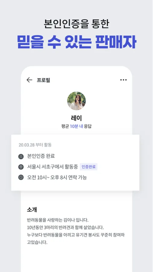 - 본인 인증을 통한 믿을 수 있는 판매자