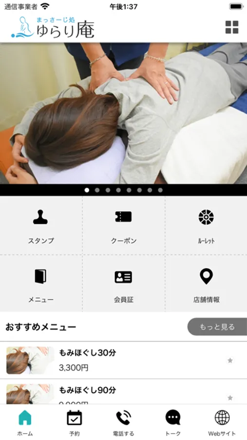 まっさーじ処 ゆらり庵の公式アプリが登場。アプリを通して『まっさーじ処 ゆらり庵』の新着情報やお得な情報をリアルタイムで受け取ることができます。また、いつでもお手元のスマートフォンから、メニューやご希望のお時間帯のチェック・ご予約などが可能です。アプリをインストールしていただくことにより『まっさーじ処 ゆらり庵』を、より便利に身近にご利用していただけます。