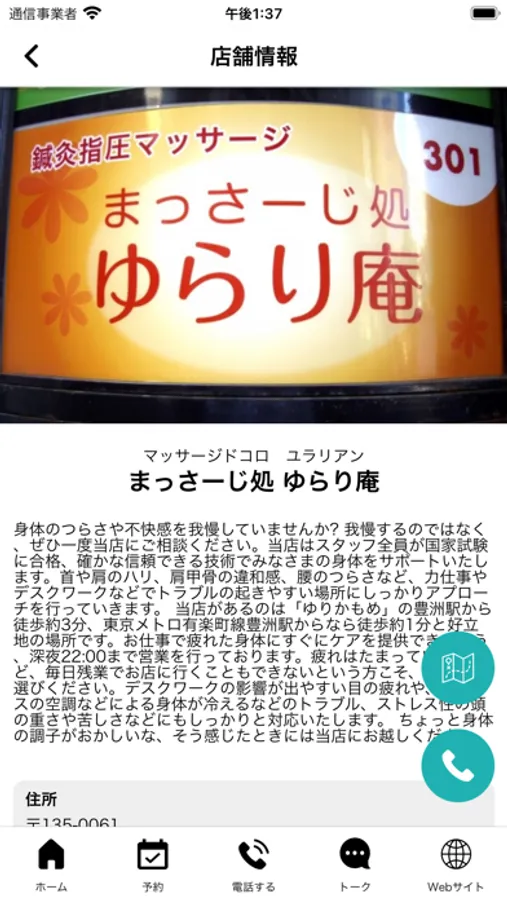 店舗のマップが表示され、地図アプリとも連携しているので、初めてのご来店の時も簡単に見つけることができます。
