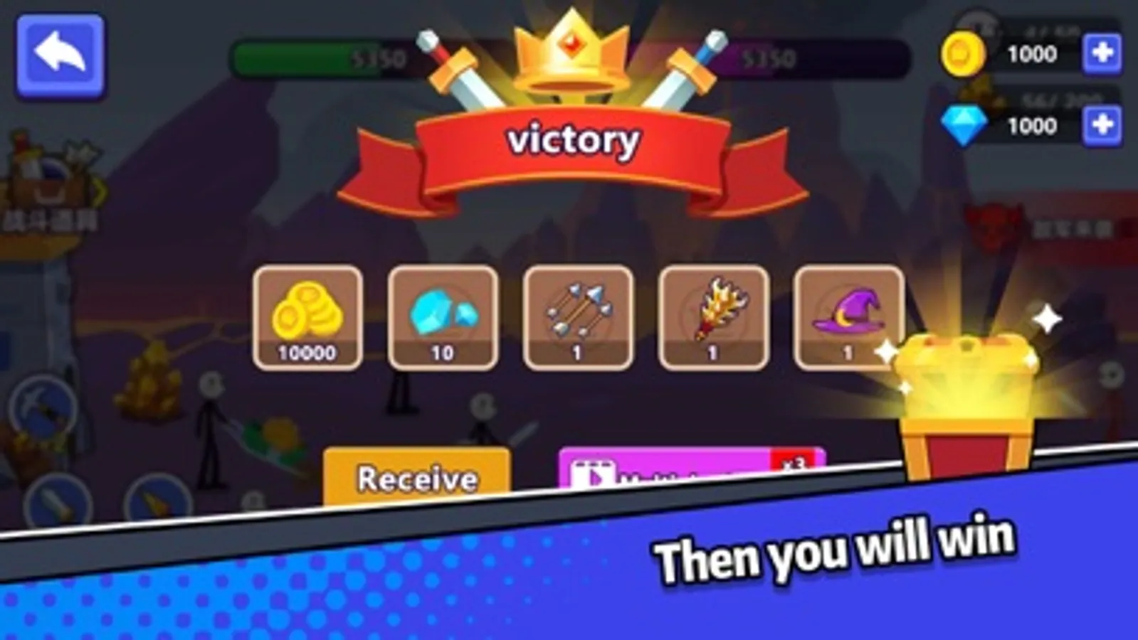 Start mining with the only miners and use the amethyst ore to train the units you need. Swordsmen, archers, giants, etc. Use a reasonable combination of arms to fight the enemy.