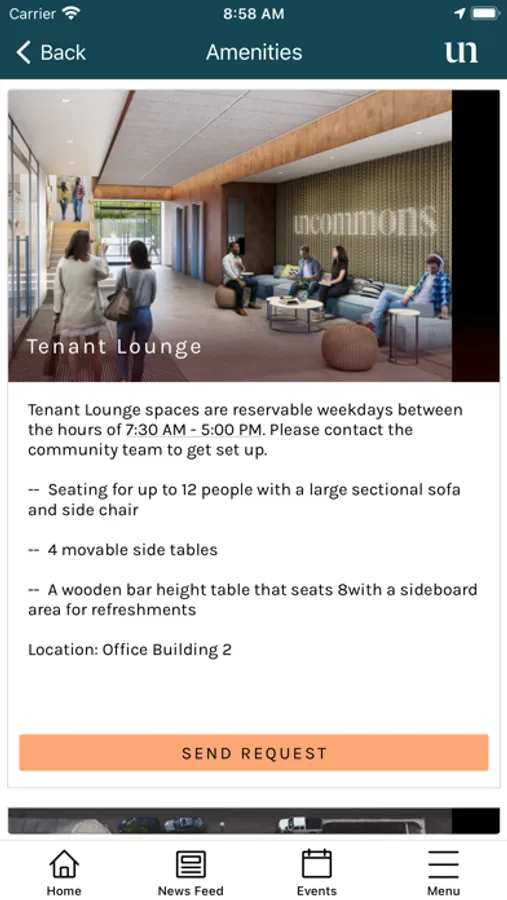 The intuitive mobile app gives users easy access to the services and amenities at UnCommons.