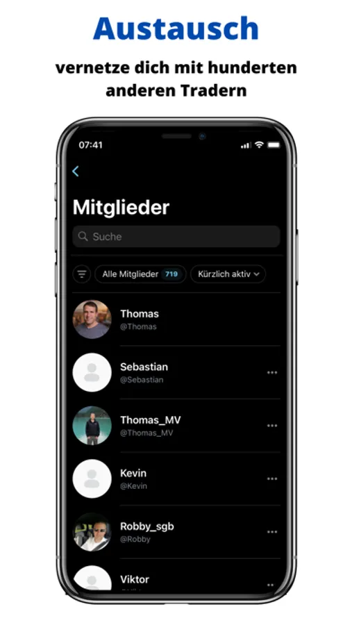 - Messaging-Möglichkeit innerhalb der App zum Austausch mit anderen TraderInnen