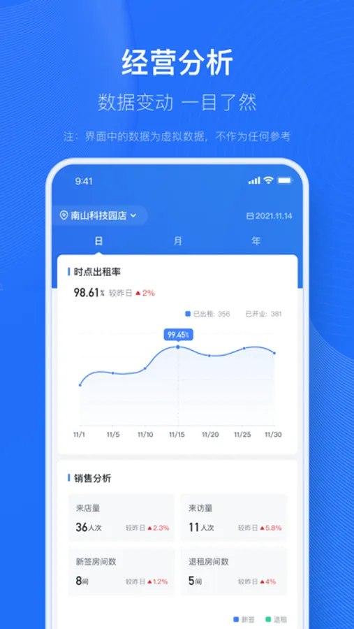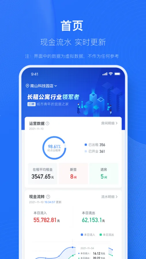小泊资管是提供给泊寓资产方使用的管理软件,业主可以随时查看项目的经营数据、现金流水明细、每一间房租赁情况、经营业绩表、经营分析、项目周边市场等数据。