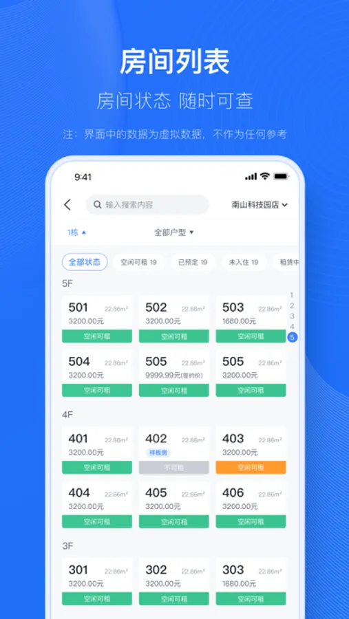 【房间租赁状态】项目每间房的租赁状态均可查询,简单明晰;