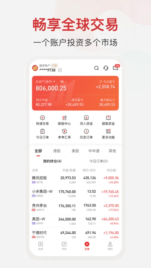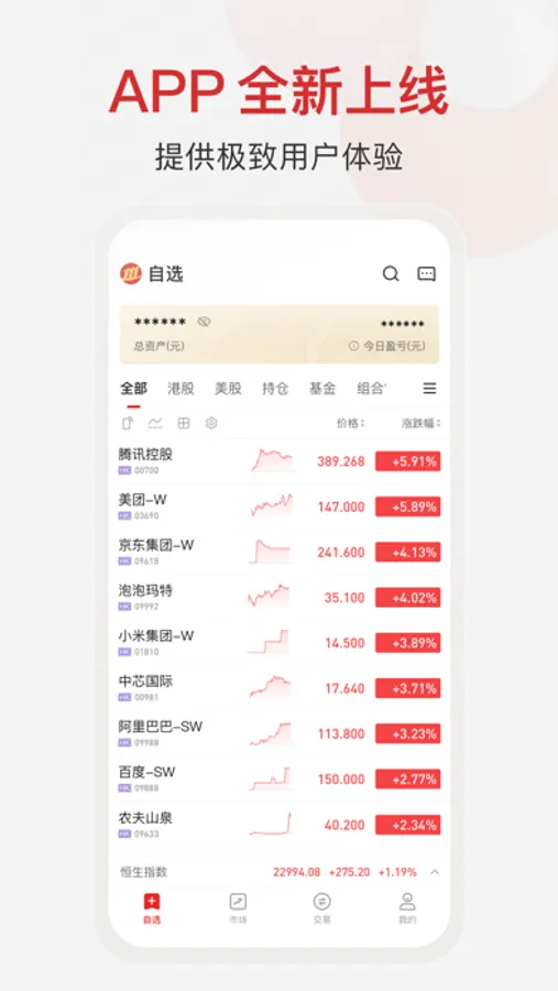 The new Internet trading platform launched by China Merchants Securities (Hong Kong) Co., Ltd. provides up-to-date market data of the Hong Kong stocks, US stocks and Shanghai/Shenzhen A stock market and provide comprehensive trading experience.