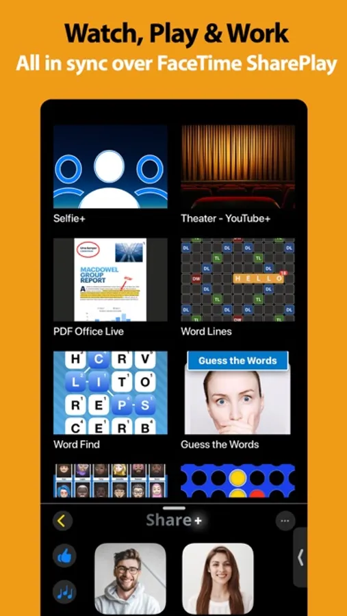 Share+ takes FaceTime's SharePlay to the next level! Enjoy many fun activities with family, friends and collegues.