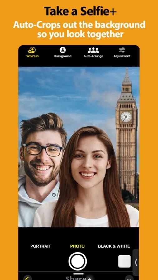 • Take a Selfie+ (crops everyone's background and merges everyone together so it looks like you're all together