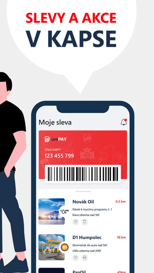 · KARTU V MOBILU s čárovým kódem k čerpání slev, kterou ukážete při placení.