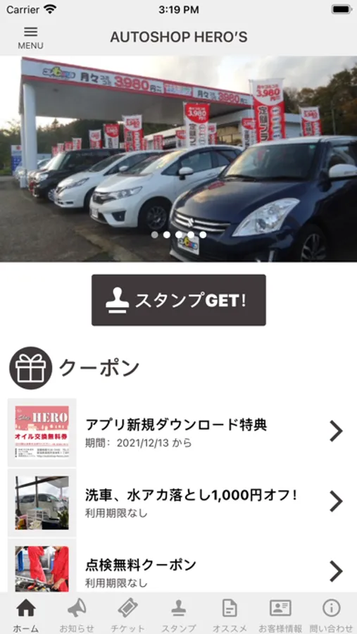 クーポン情報が更新された場合は、プッシュ通知にて更新のお知らせを行うことがあります。