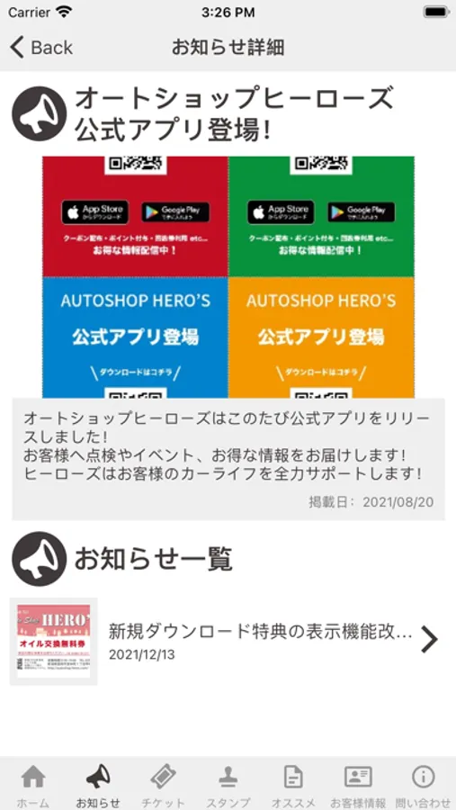 新しいお知らせをプッシュ通知にてお届けすることがあります。