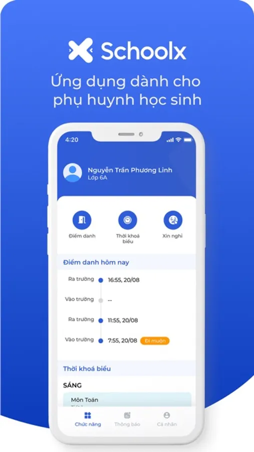 Schoolx là ứng dụng dành cho phụ huynh học sinh giúp phụ huynh nắm bắt được thông tin của con tại trường.