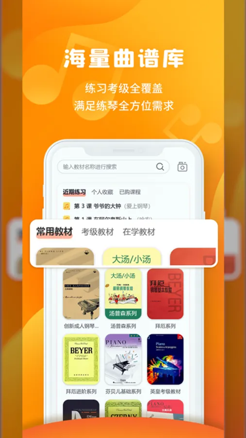 系统提供海量的乐谱,其中包含大量主流乐谱的演示试听、陪练、弹奏视频三视图教学等资料,是随时随地有琴就能练的移动乐谱库