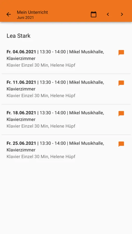 Dabei werden sämtliche Daten DSGVO-konform und verschlüsselt in einem zertifizierten Rechenzentrum in Deutschland gespeichert. Alle Funktionen zum Austausch von Nachrichten zwischen Lehrkräften, Eltern, Schüler*innen und der Musikschule setzen keinerlei Kontaktinformationen voraus. Die Übermittlung von Nachrichten erfolgt über eine App-interne ID. Zum Chat und Nachrichtenaustausch sind keine E-Mail-Adressen oder Handynummern erforderlich!