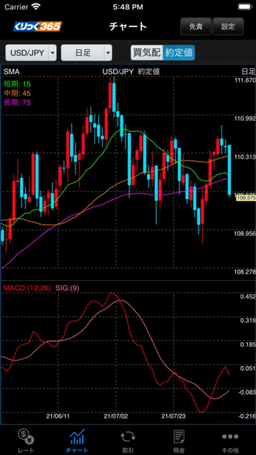 2.チャート表示(単純移動平均、一目均衡表、ボリンジャーバンド、ストキャスティクス、RSI、MACD等)