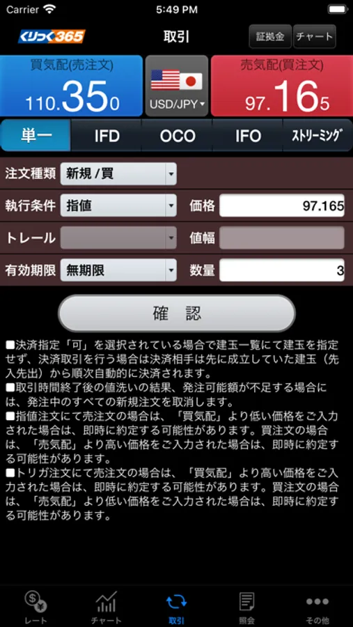 3.多彩な注文機能(成行、指値、トリガ、IFD、OCO、IFDOCO、ストリーミング、トレール)
