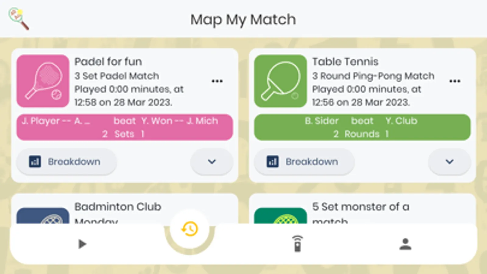 The match score and statistics are tracked and announced as you play for both players to keep up with what's going on. On completion, there's a breakdown of breakpoints, match velocity, total points won. You can even share your results with the other players.