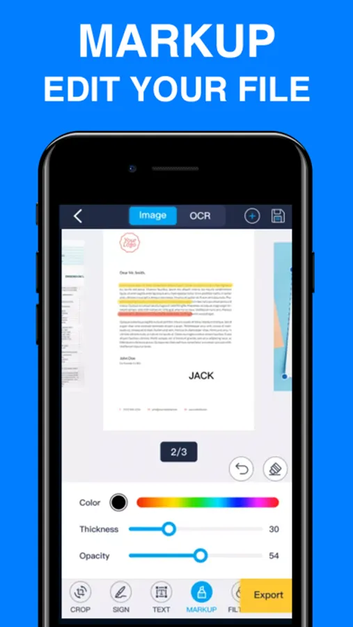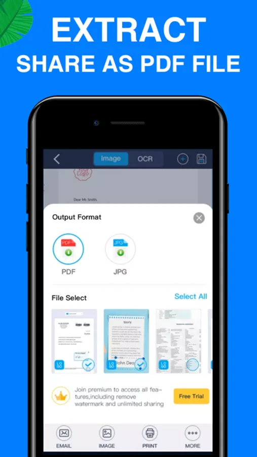 - Email the scans as PDF, JPEG, TXT or save to Camera Roll