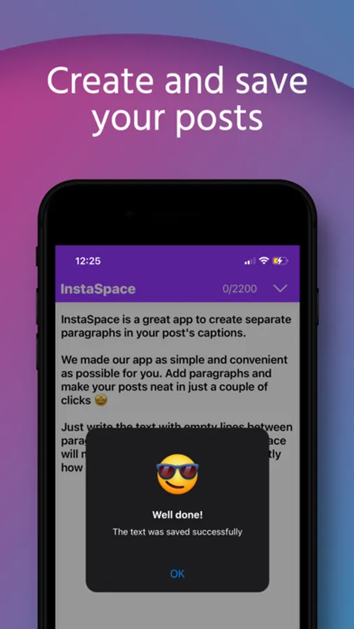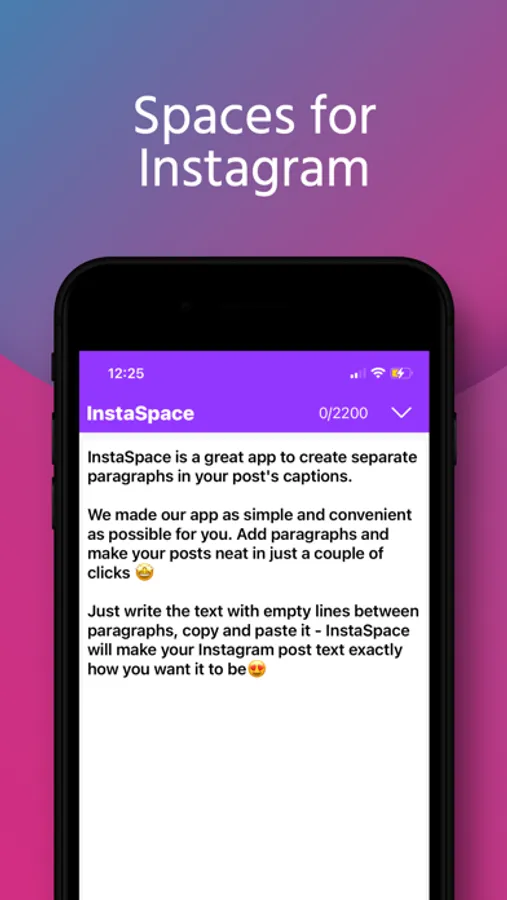 We made our app as simple and convenient as possible for you. Add paragraph, space and line breaks to make your posts neat in just a couple of clicks! Instaspacer is your best ally for your Instagram account.