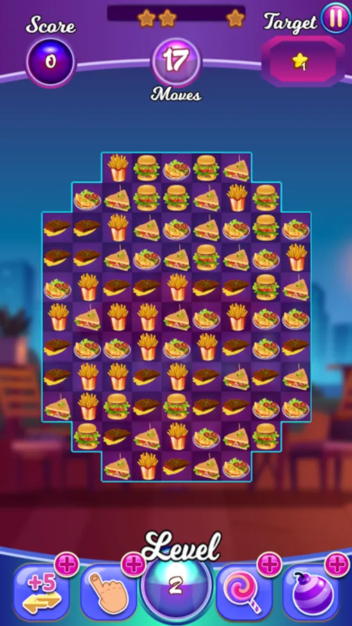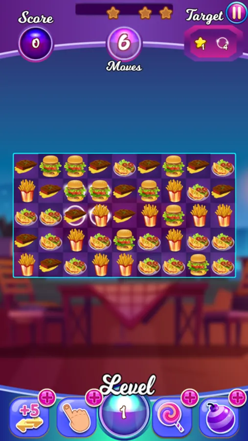 Just like other 3 matching games, we have designed his new and improved match candy game. Match three of the same type or colored food to smash and match 4 of them to create a powerful bomb. The bomb while matched with the same candies/foods will create an explosion swiping the entire row. You can also create other bombs to finish the game effortlessly by matching candies.