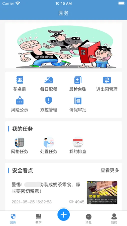 这是一款专为幼教教师及学生家长定制的便捷实用app,分为教师使用和家长使用。深度贯通学校、家长、学生三个角色的互联互通,聚焦学生安全成长及家校共育两个方面,本款app是教师使用版,可实现学校安全巡查上报工作及学生管理,安全巡查上报工作主要包括落实学校一岗双责任务,实现网格安全巡查每日一报,学生管理主要实现了学生请销假一键管控,学生进出校时间查看,学生就餐每日公示、学生营养健康管理、教师教研跟家长互动等,实现幼儿信息在老师和家长之间信息共享,全面守护幼儿健康成长。