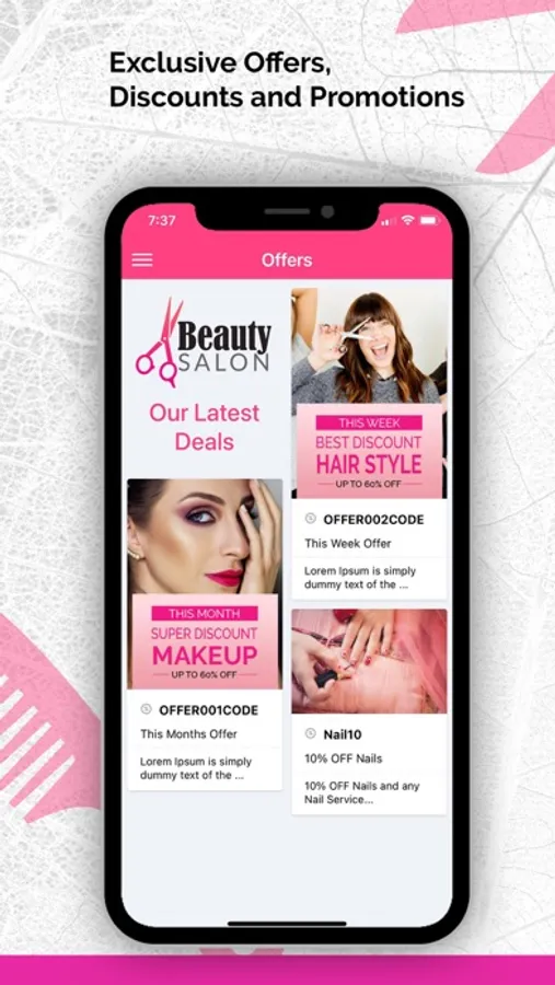 A great app for Beauty Salons, Beauty Parlours, Massage, Spa, Barbers and all kinds of hair and beauty services. The app can be used for any of the following services:
