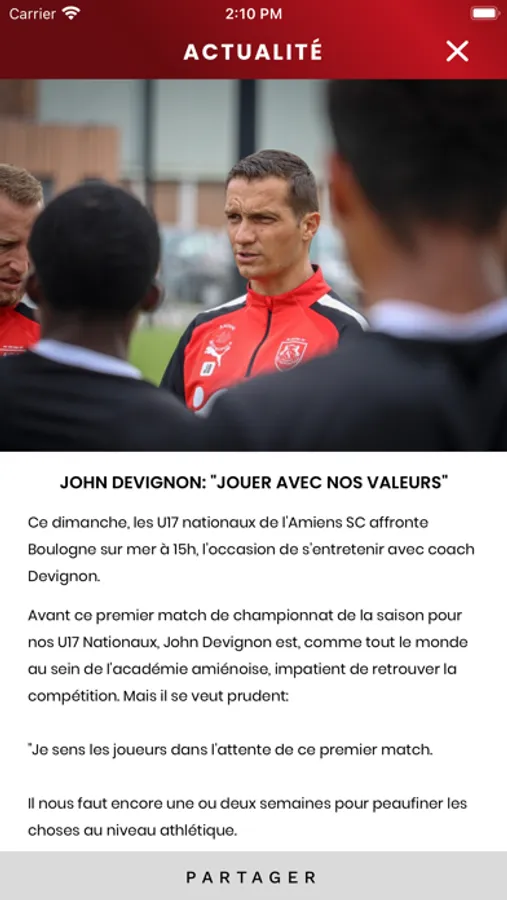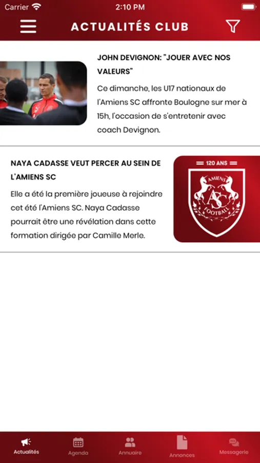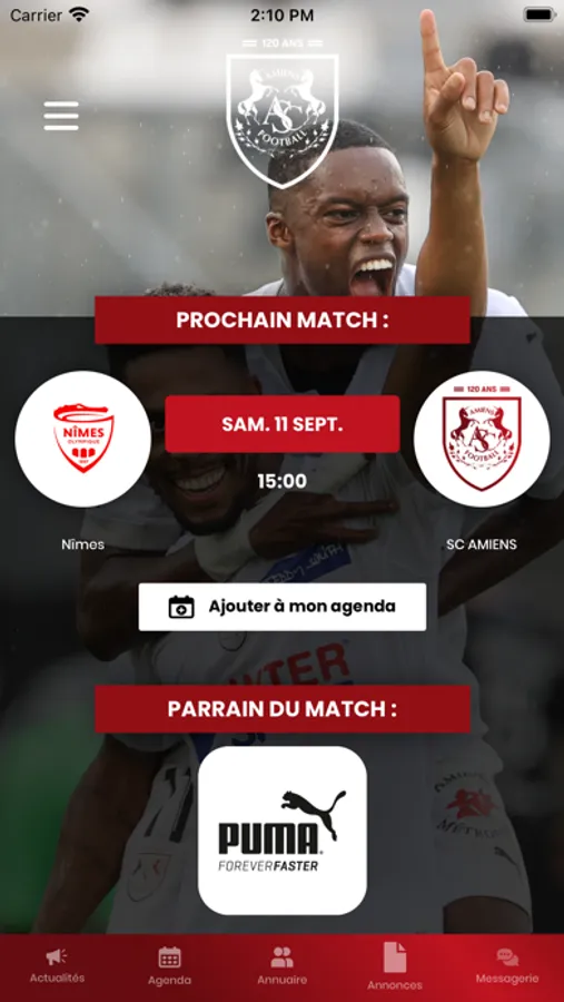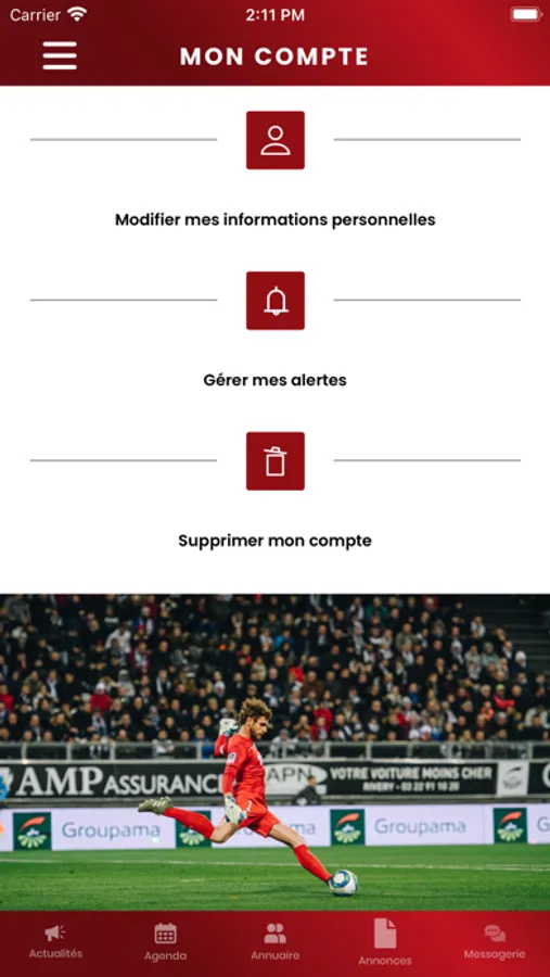 - Actualités de votre équipe, du club et des entreprises partenaires