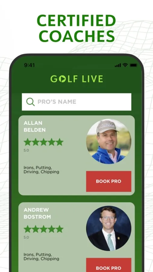 Create a profile, select live lessons, and instantly be connected with a live Golf Live coach, who will evaluate your swing and improve your golf game. With Golf Live you can schedule a lesson in advance and favorite coaches you want to be connected with again.