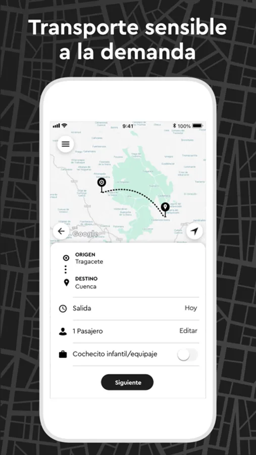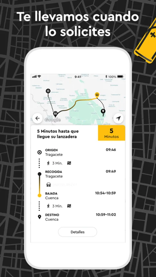 • Introduce tu dirección de origen y elige destino. Verás enseguida a qué hora iremos a recogerte.