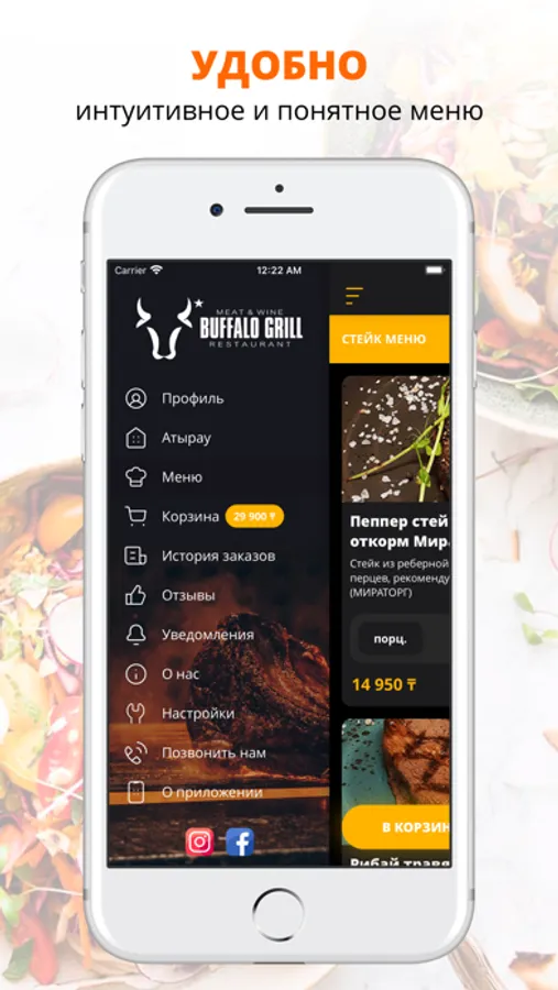Приложение BUFFALO GRILL — это удобный способ заказа еды домой или в офис! Всегда в нашем меню всегда можно найти вкусный шашлык на гриле, аппетитные закуски, сочные стейки и бургеры, шашлык в хоспере, салаты, сытные супы, блюда из рыбы, сливочные пасты. Мы готовим наши блюда из качественных свежих ингредиентов и доставляем еду по Атырау быстро и бережно.