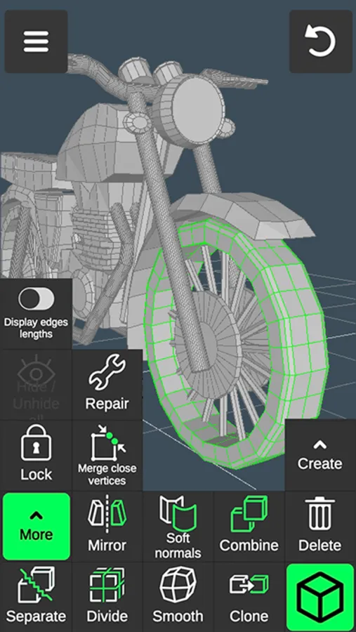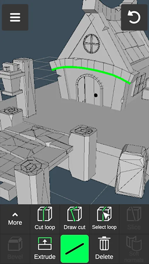 3. Edge tools: Draw cut by single swipe or by set point by point, Cut loop (create new edge-loops), Select loop (also by double tap), Extrude, Delete, Select ring, Create face by border edge (fill the hole).