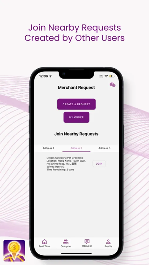 Users create / join request, suitable merchant take these group orders.