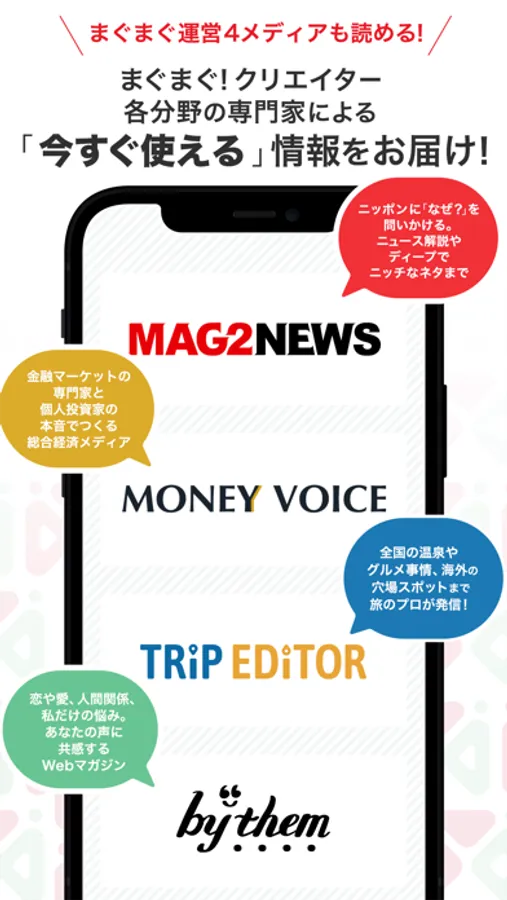まぐまぐ!は約750万名の読者が利用している日本最大級のメルマガコンテンツプラットフォームです。