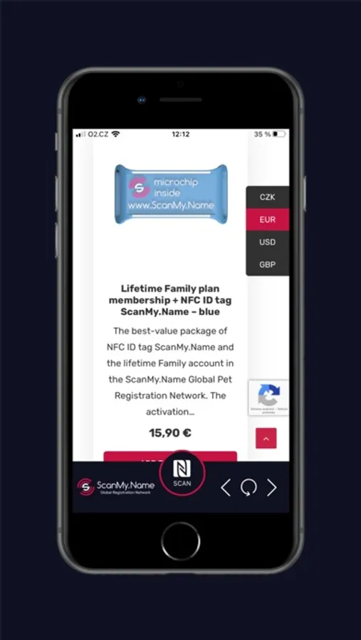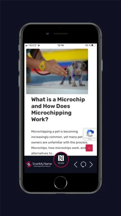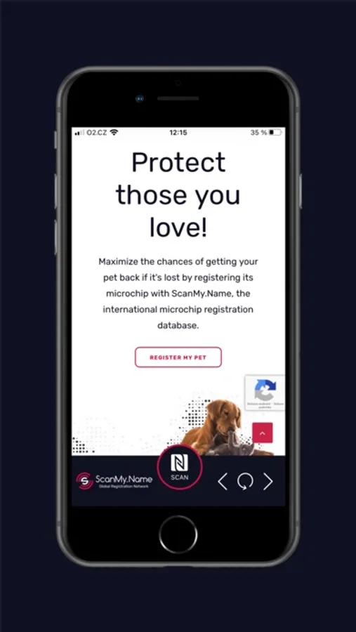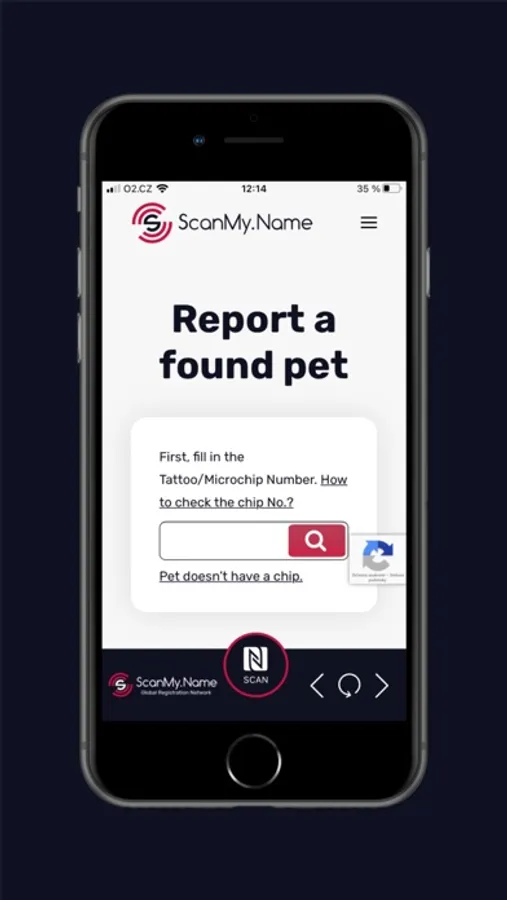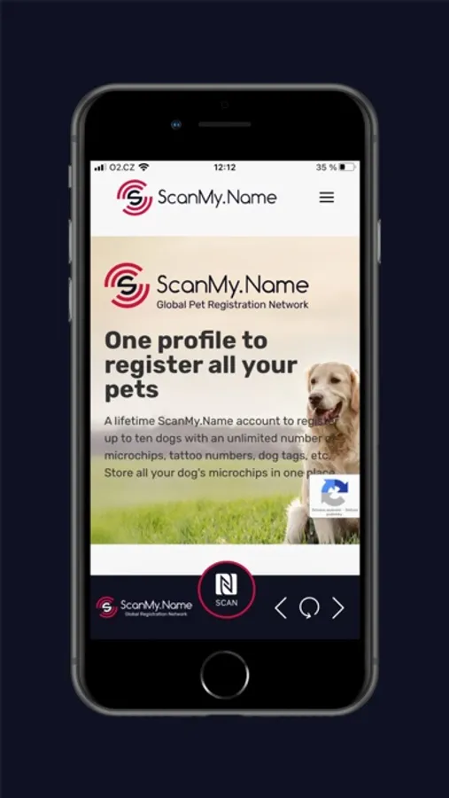Using the app, you can read NFC tags with your phone. Simply hold your phone over an NFC tag and press the "SCAN" button. The app will automatically scan the tag and display its code without the need for login or settings. The finder can contact the owner immediately at the moment of finding the dog.