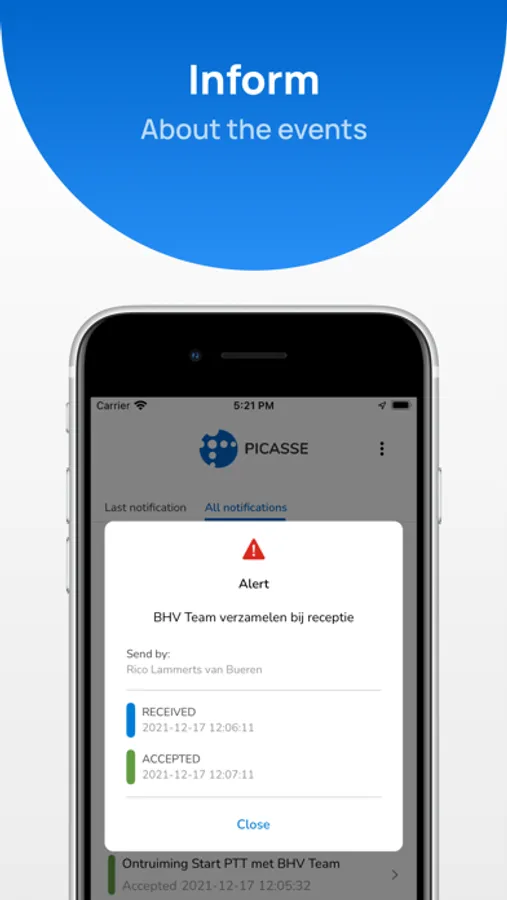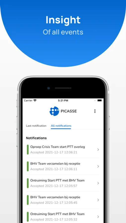 With the Picasse NXT app you can efficiently and easily execute communication protocols. Picasse supports incident and crisis workflows with its easy-to-use dashboard and ensures that you can be called, informed and collaborate via your phone.