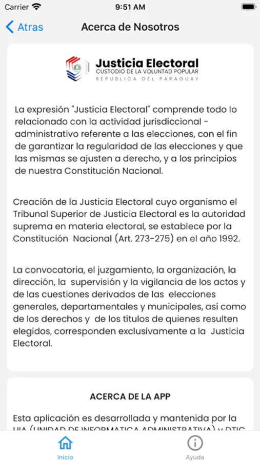 Aplicación con informaciones relacionadas a la Justicia Electoral de Paraguay. Desarrollada por la UNIDAD DE INFORMATICA ADMINISTRATIVA