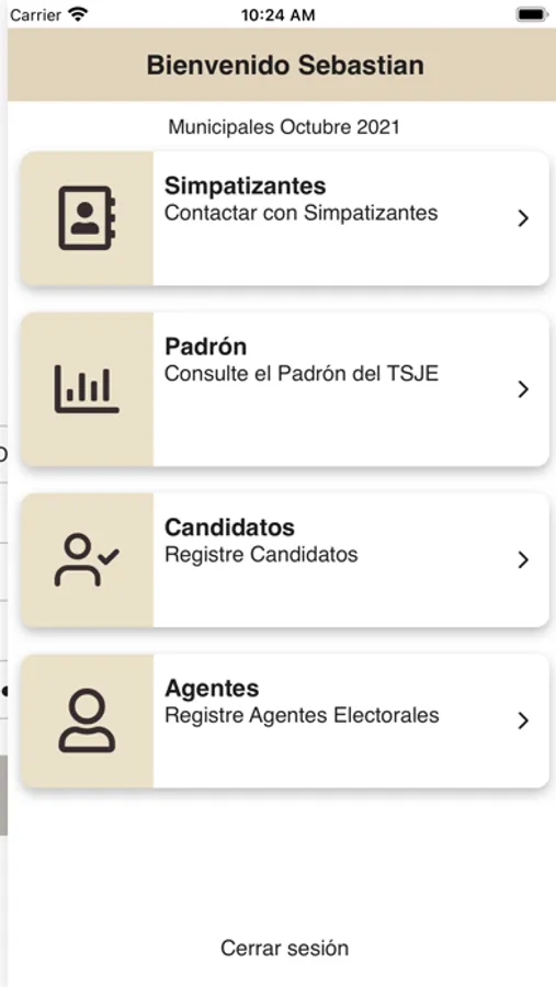 Campaña: La app permite identificar a los simpatizantes / votantes de la organización o el candidato, relacionando con el local de votación al que pertenece. Estableciendo la posibilidad de enviar información sobre la campaña, el candidato, las propuestas, etc., a través del correo electrónico, WhatsApp o redes sociales. A su vez, poder gestionar la efectiva participación en el día de las elecciones con la posibilidad de marcar la asistencia de estos.