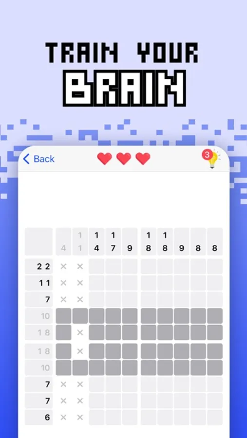 There are many different versions of the famous Japanese crosswords. And now here is Nonogram: a graphical puzzle based on numbers and some simple rules. There is a grid, with numbers indicating how many blocks in the playing area you need to color in. When you get the right solution, the colored blocks form a pixel-art image. The difficulty increases as you progress through the levels. There are levels of different sizes - including ones where you can fully show off your talent and intelligence. Since the difficulty of the game increases, this logic puzzle will be interesting for both beginners and experts.