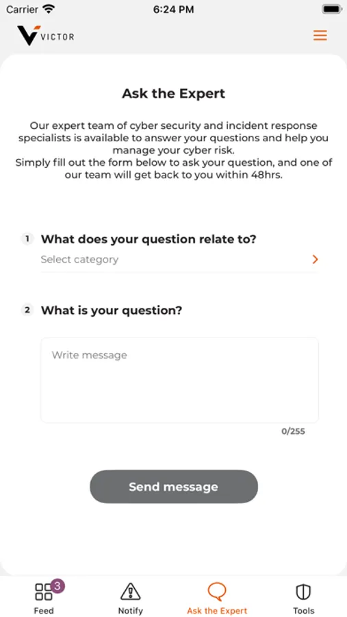 The Victor incident response app gives you the ability to instantly notify our incident response team of a cyber event. The app includes a tailored threat intelligence feed, direct access to our world-class cyber incident response team via the 'Ask the expert' functionality, and a number of tools to help you protect your business against cyber attacks.