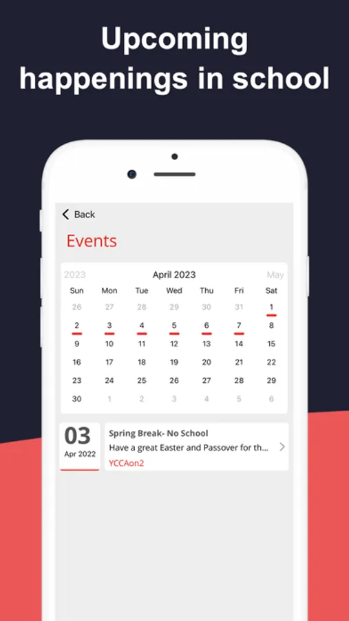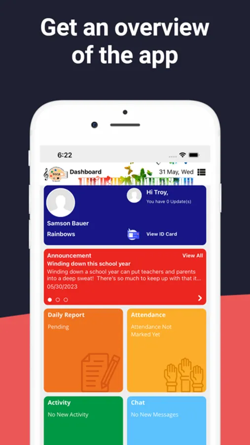 Welcome to the YCCA App. This App helps you stay informed on your child’s progress in class.